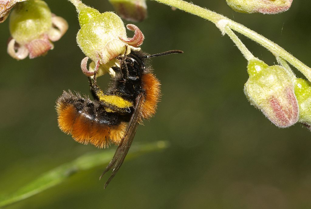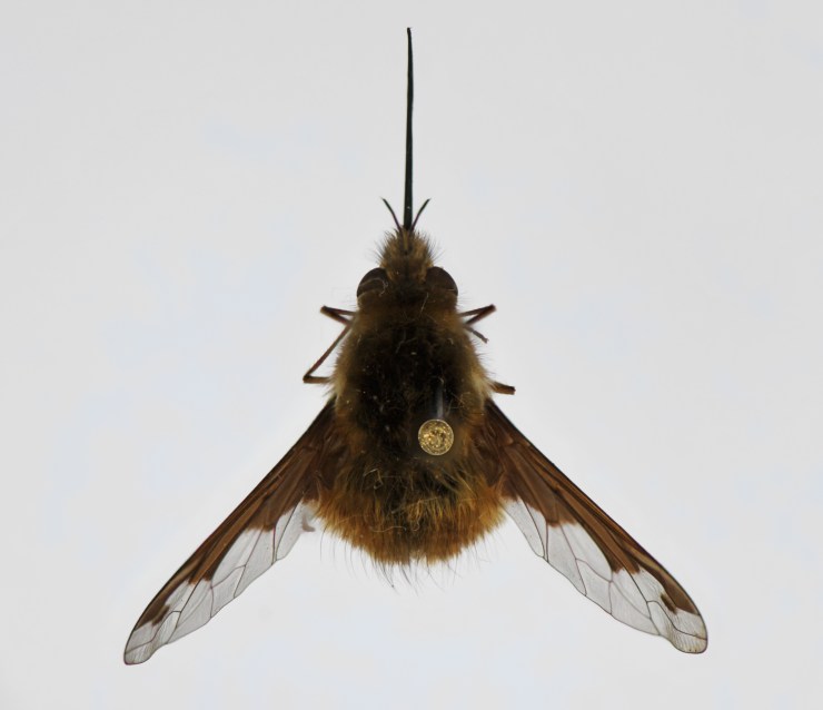Bee-fly feeding on nectar. You can see pollen grains on its legs and body. Image credit – Flickr / Robert Ault, CC BY-SA 2.0