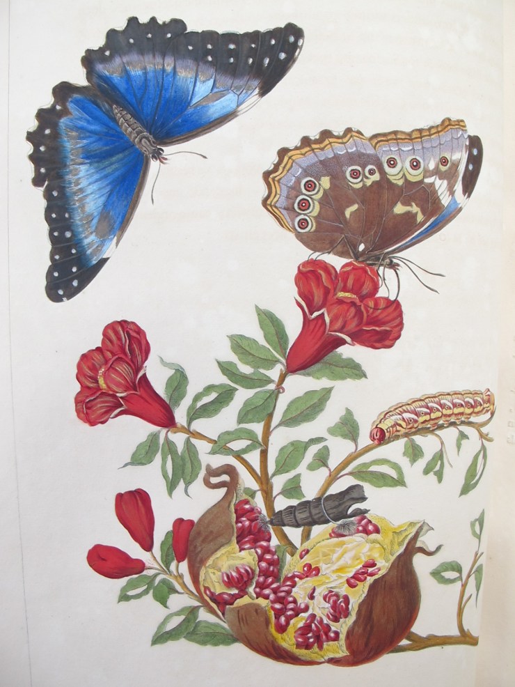 The Library here at the Museum of Natural History is lucky enough to hold a copy of Maria Sibylla Merian’s Metamorphosis Insectorum Surinamensium (Insects of Surinam). This large and stunningly beautiful book by the German artist, scientist and adventurer, Maria Sibylla Merian (1647-1717), was published in 1705. Trained as a professional artist, Maria studied insects and observed their metamorphosis from an early age. She could be described as one of the earliest entomologists.
