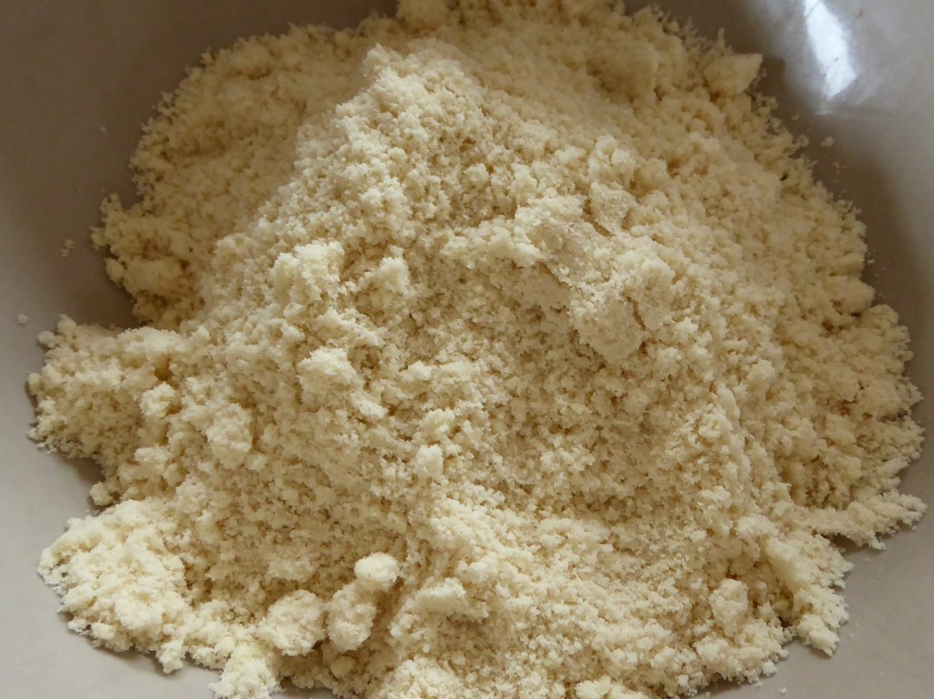 2 In the mixing bowl, rub the butter into the flour using your fingertips. Keep going until the mixture looks like breadcrumbs.